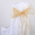 We produce chair sashes in all major fabrics like Satin, Organza, Glitter and Animal Print. One of the most attractive fabrics is Glitter Organza which gives a shining translucent nature to the product. It is more common inexpensive yet an expressive fabric surely it will reduce your wedding expenses but gives the majestic feel to your wedding celebration.